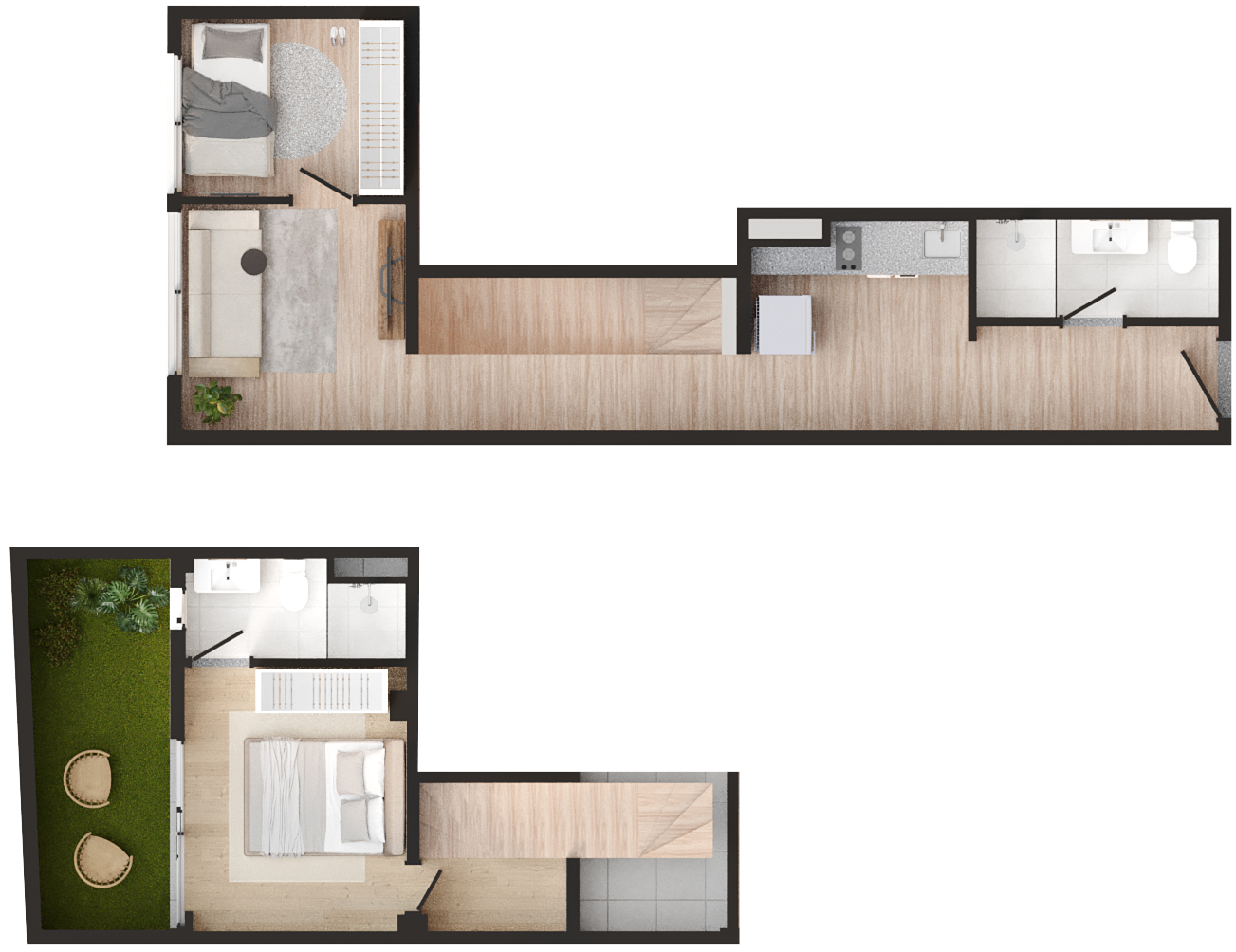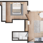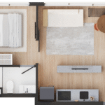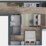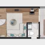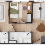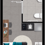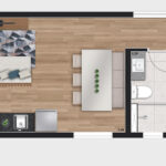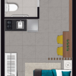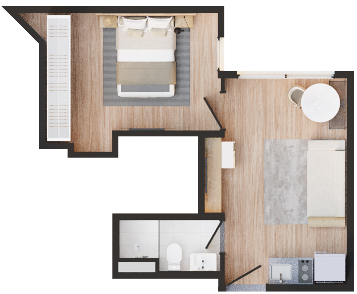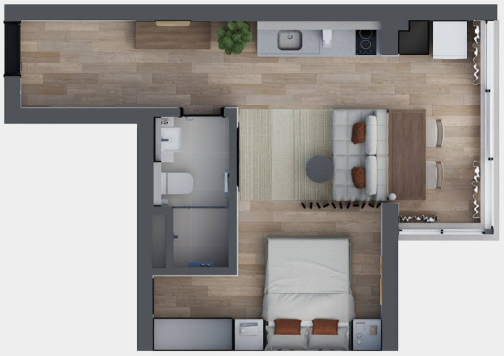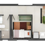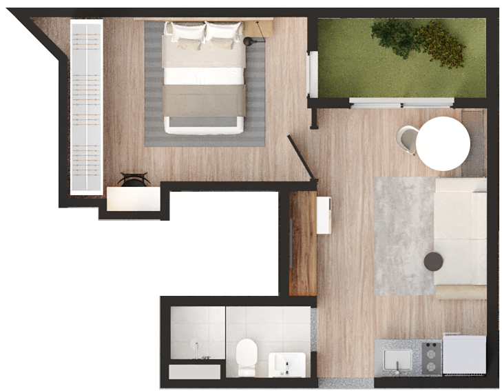 • Tipologias: 1 studios (24m², 26m², 28m², 31m² e 35m²)