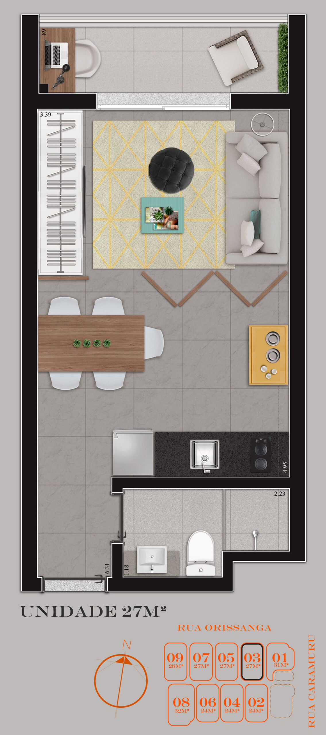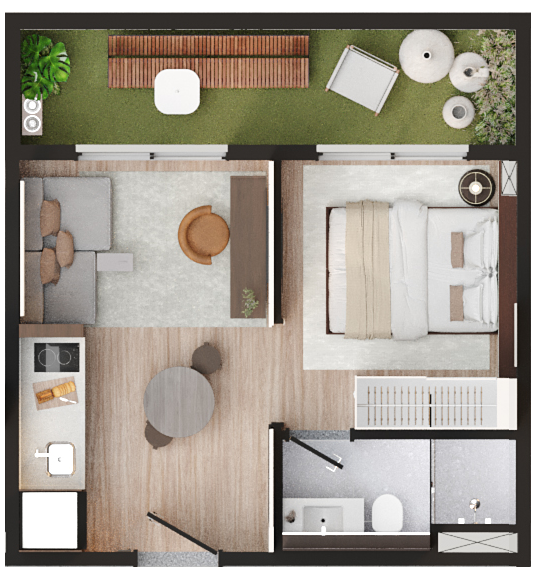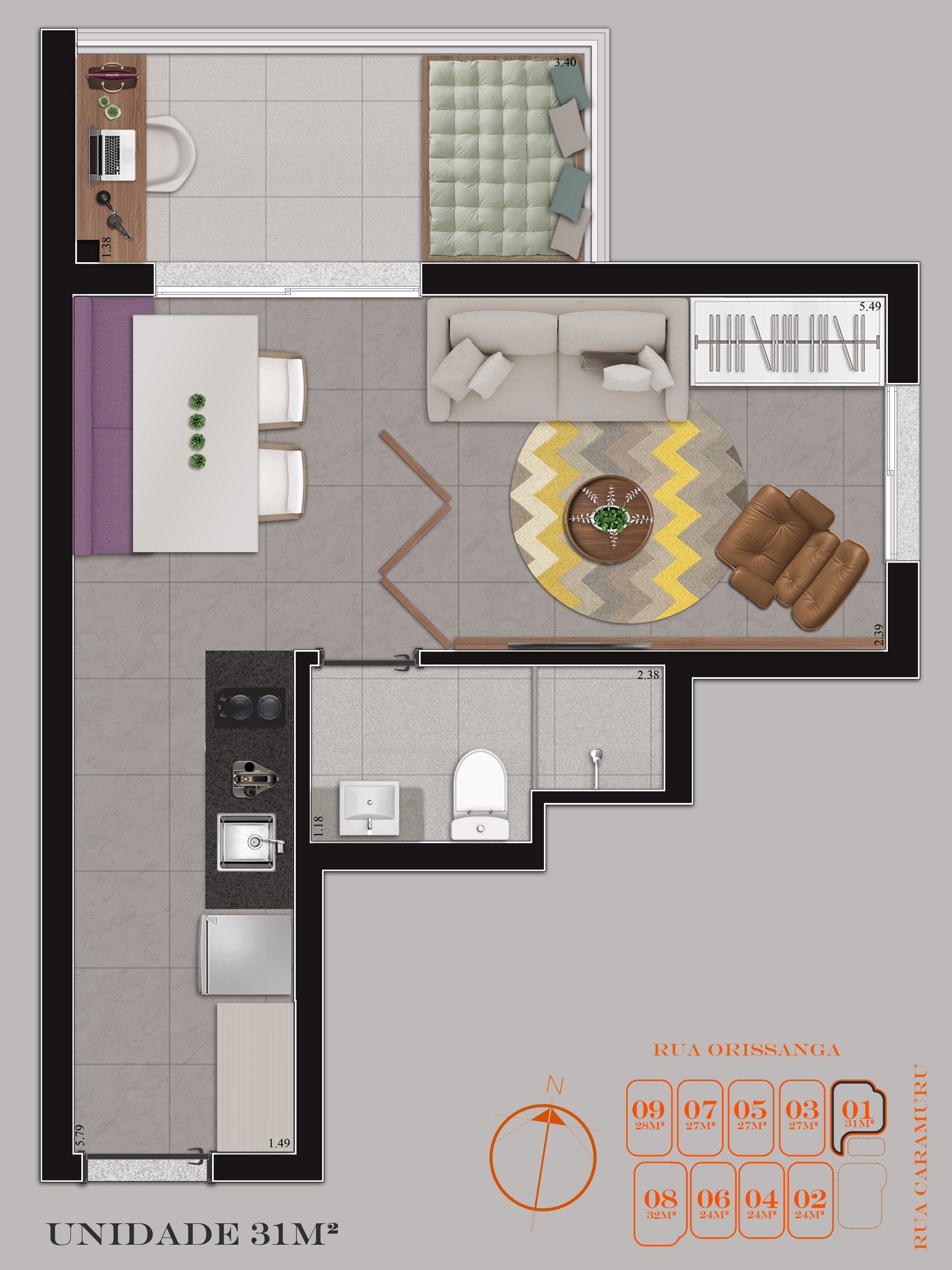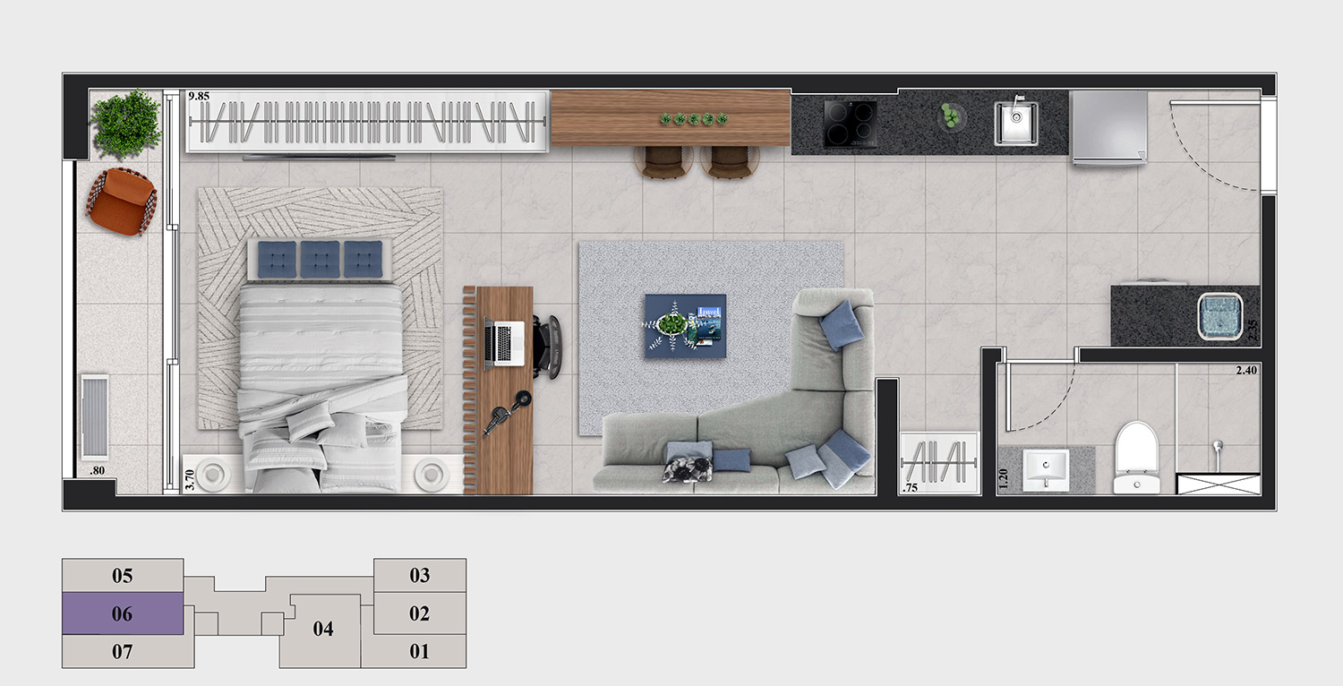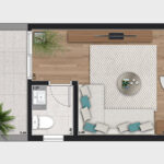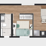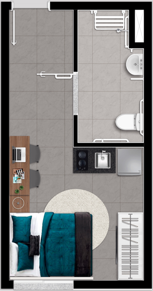 • Tipologias: Studios (24m², 27m² e 28m²), 1 dormitório (31m²) e 2 dormitórios (32m²)