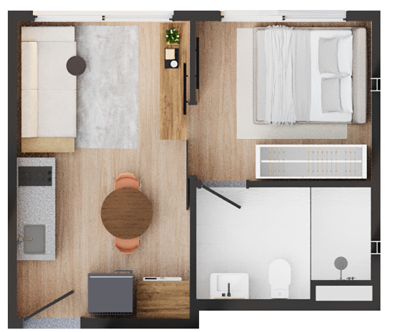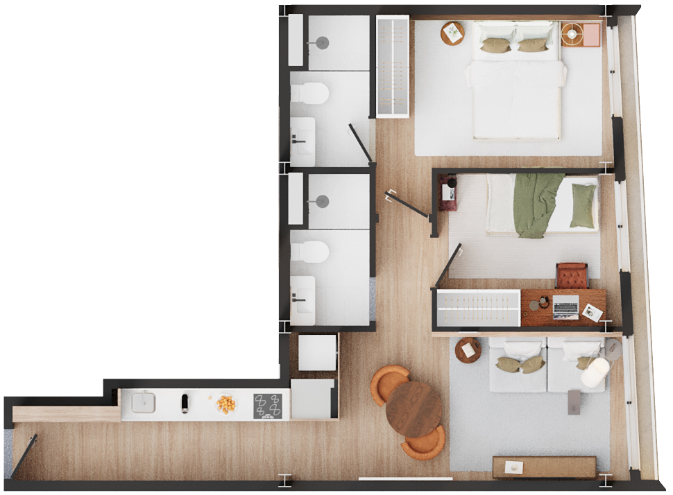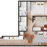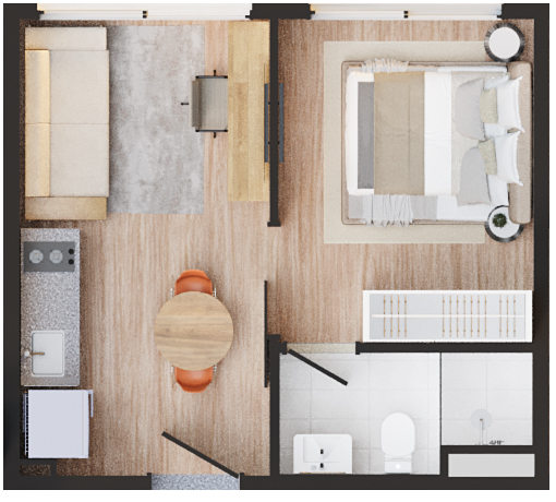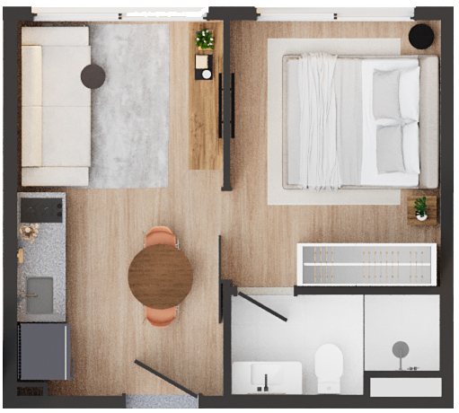 • Área comum: Coworking e lavanderia coletiva