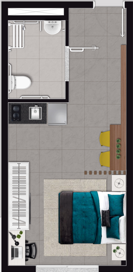 • Tipologias: Studios (22m², 27m², 28m² e 31m²)